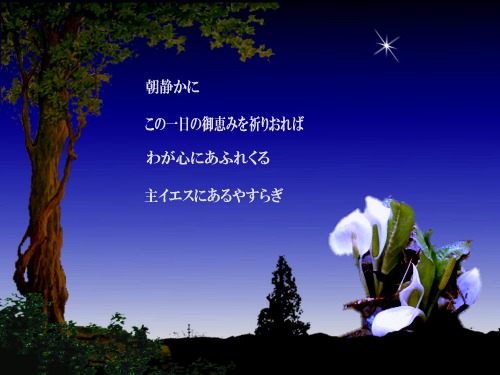 静かに「あさしずかに・・・」と賛美されていてハッとしました。初めての賛美でしたが