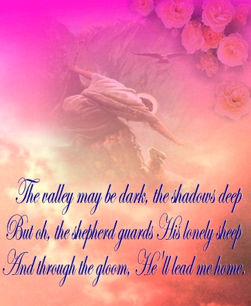 The valley may be dark, the shadows deep, But oh, the shepherd guards His lonely sheep;